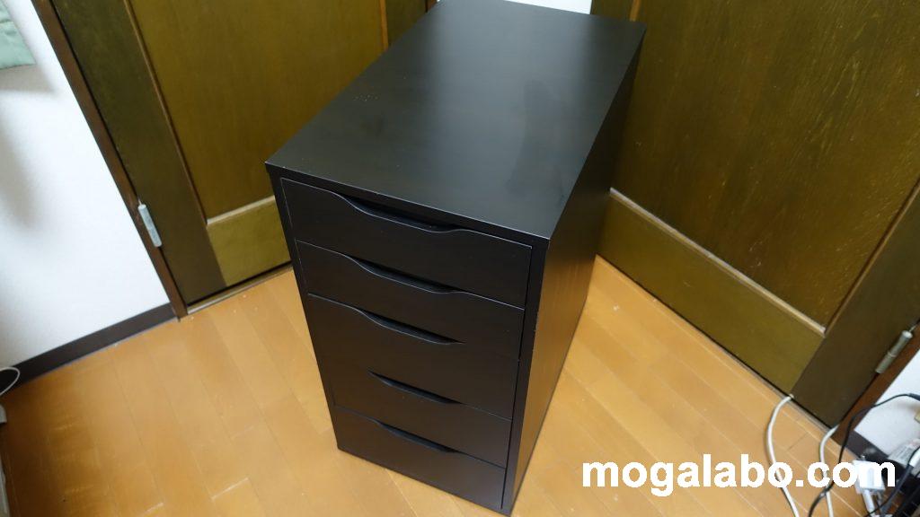 これらの問題を解決するために、引き出し兼PC本体を置く台になるものを探すことになりました。そして、見つけたのがイケアのアレクスでした。