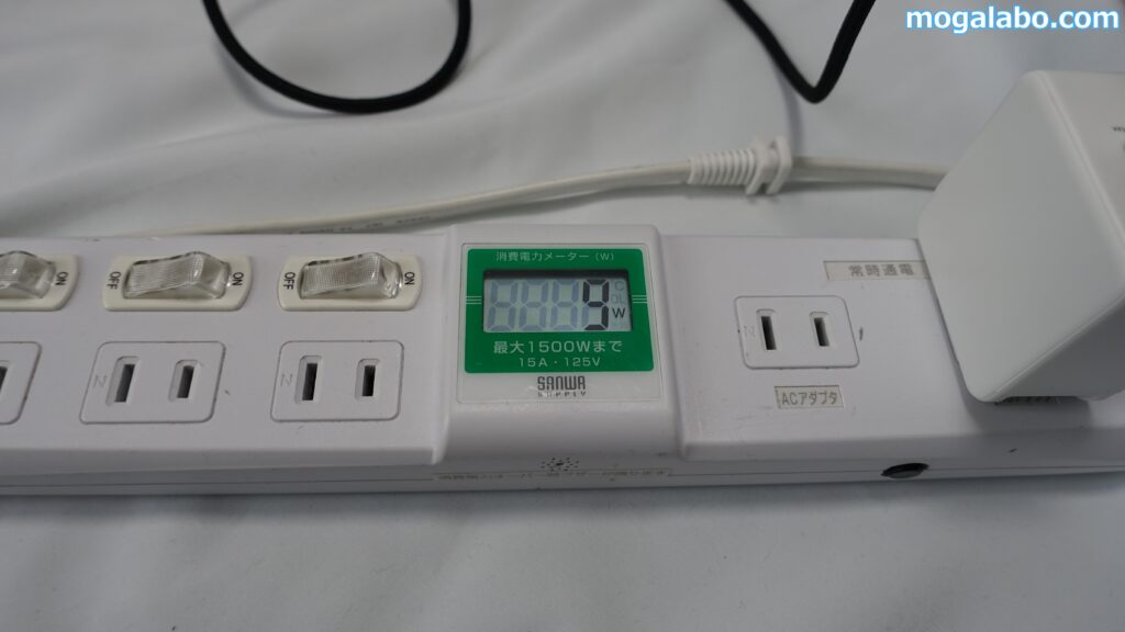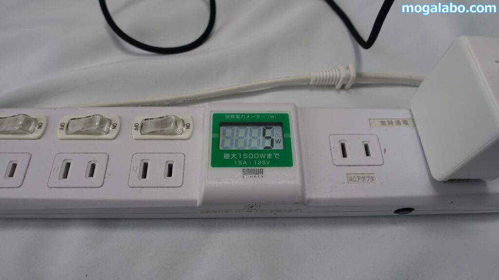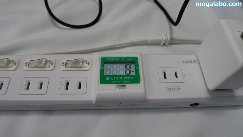USBアダプタにつないだ際の消費電力は弱風モードの時は約5W、中風モードの時は約8W、弱風モードの時は約9Wでした。