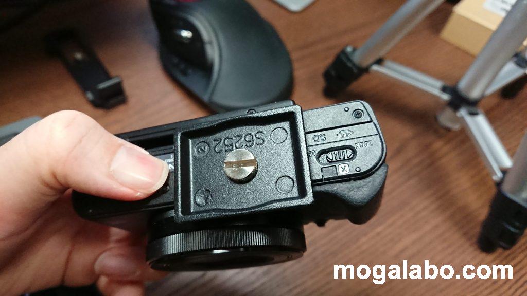 カメラにクイックシュープレートを取り付けます。コイン式になっているので、コイン等を使い、しっかりとねじ込みます。