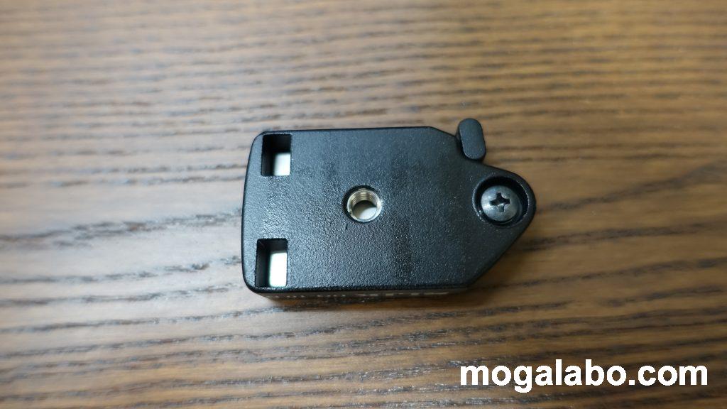クイックシュープレートの裏側クイックシュープレートの裏側は、コイン式のカメラネジつまみがあります。