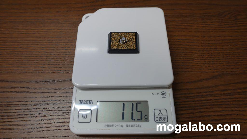 クイッシュープレートの重量は11gクイッシュープレートの重量はわずか11gで非常に軽量でした。クイックシュープレートは基本的にカメラにつけっぱなしになるのですが、特に重さは気にならないと思います。