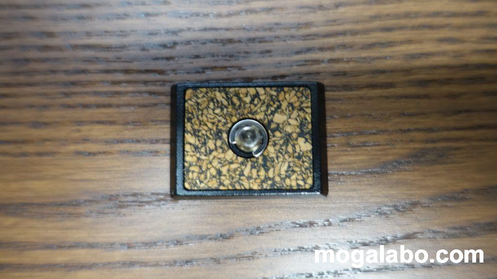 クイックシュープレートのサイズは横は38mm、縦は28mmで、思った以上に小さかったです。表面には1/4のカメラネジがついています。