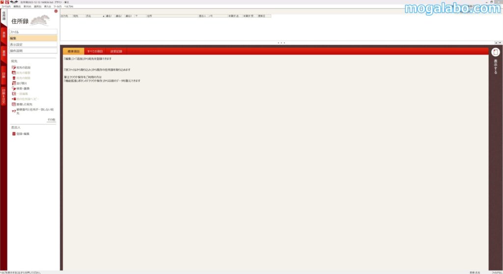 上記の画面は、「筆まめ」と「筆王」の基本画面です。UIインターフェースは「筆まめ」が圧倒的に使いやすいです。「筆まめ」のUIのフォントやデザインは親しみやすさを感じますが、「筆王」は地味過ぎて正直、使いづらいです。