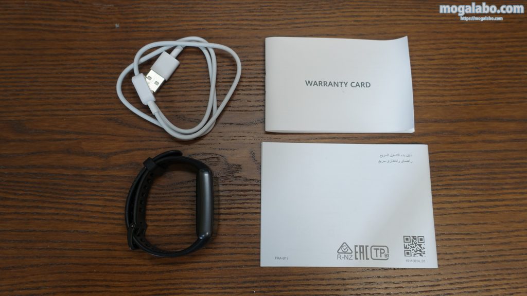 HUAWEI Band 6の付属品です。付属品は以下の通りです。残念ながら充電器は付属しません。