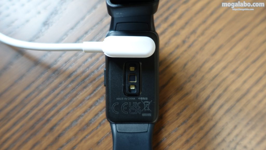 充電する際は、充電ケーブルを本体裏面の充電口にセットします。ちなみにマグネットで吸着するので、お互いを近づけるだけで「ピタッ」とはまります。