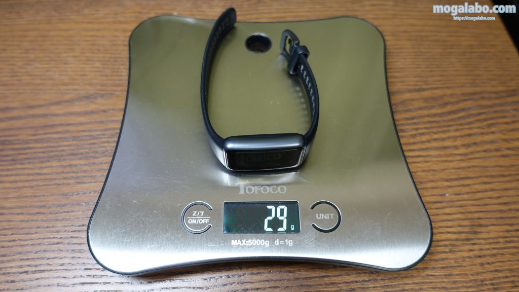 重量はベルト込みで約29gです。ベルト抜きだと約18gです。