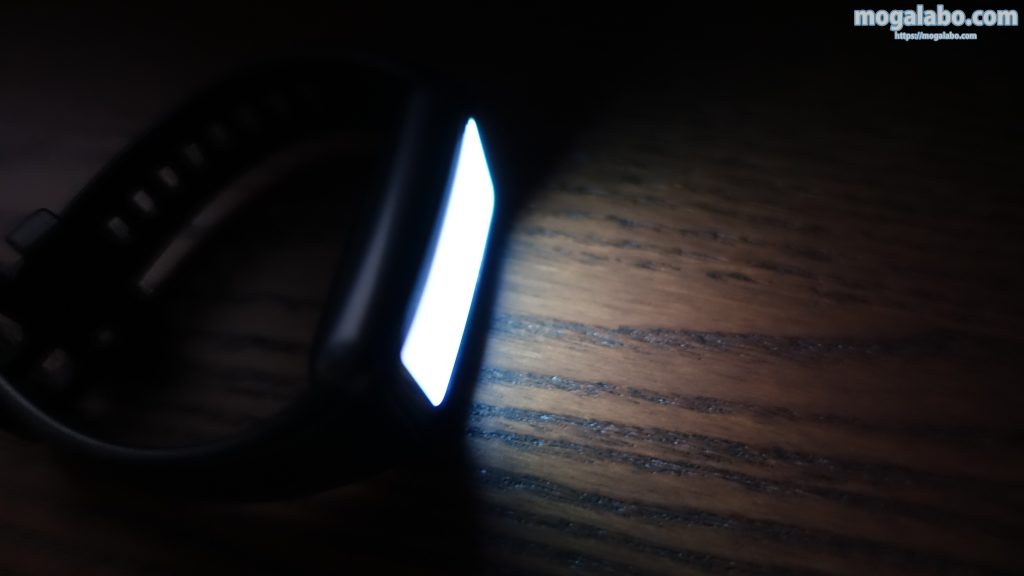 普段は画面が消灯しますが、腕時計を確認するような動作を行えば、自動的に画面が点灯します。