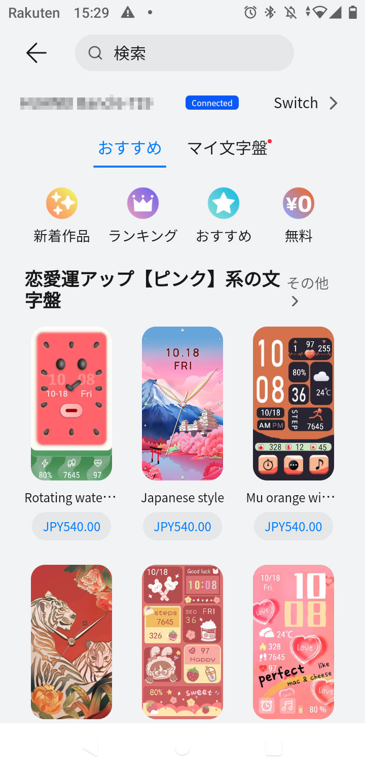 時計盤はデフォルトで何種類かありますが、HUAWEI Watch Face Storeから課金して別の時計盤を入手することも可能です。