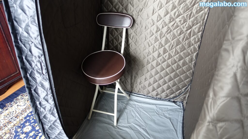 使ってみた感想ですが、自分がよくいってるサウナと似たような感覚を味わうことができました。30分ほどテント内に入りましたが、いい感じに汗ばみましたし、なによりも人の目を気にすることなくサウナを楽しめるのが最高です。
