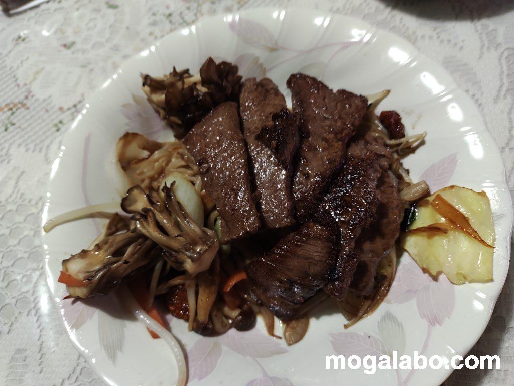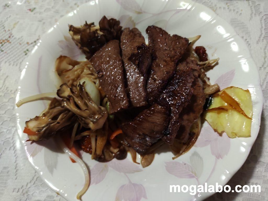 この画像だと少し分かりづらいですが、AI撮影モードONにした方が料理が鮮やかに見えます。特にキャベツのところが分かりやすいと思います。
