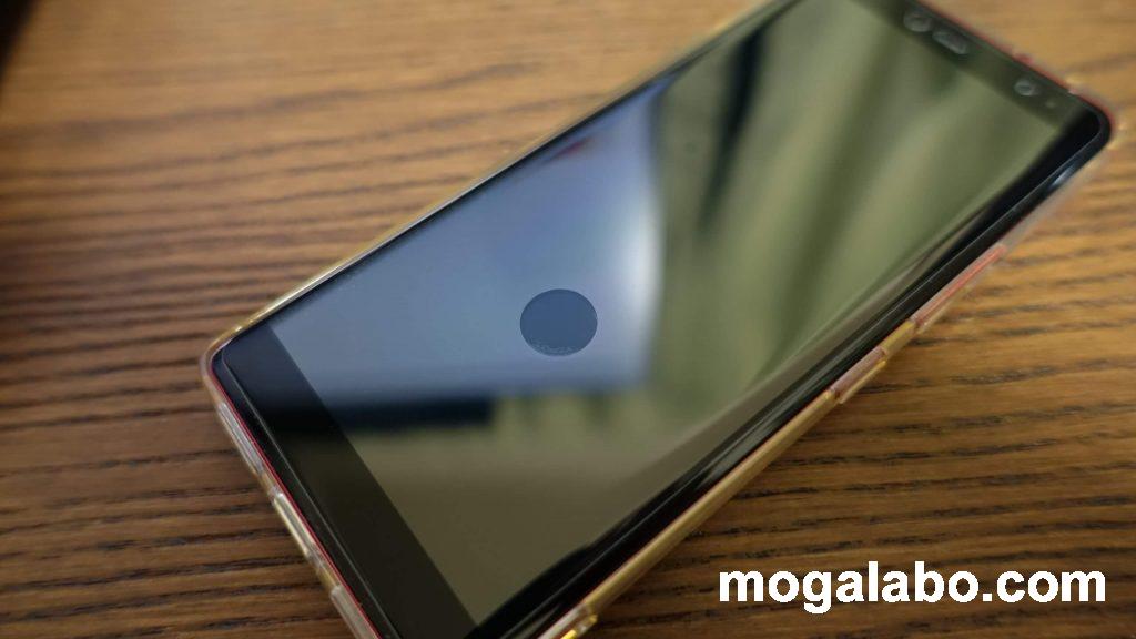 ディスプレイ内指紋認証対応のフィルムディスプレイ内指紋認証対応のフィルムだと、指紋認証の部分が画像のように丸くくりぬかれる感じになります。