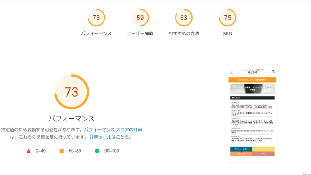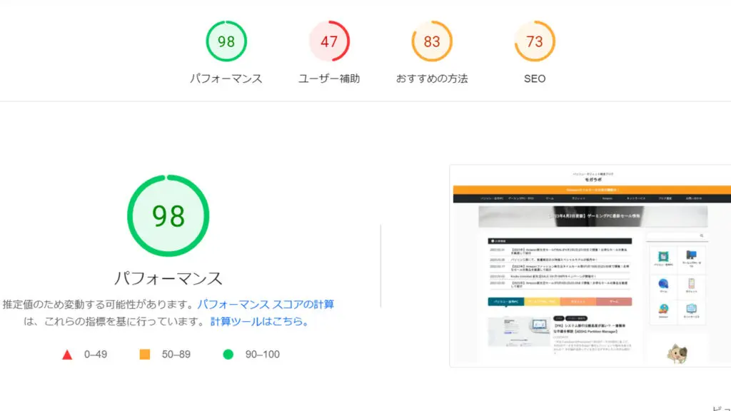 旧サーバーのリトルサーバーではデスクトップが89、モバイルが48だったので、大幅に速度が上昇しました。