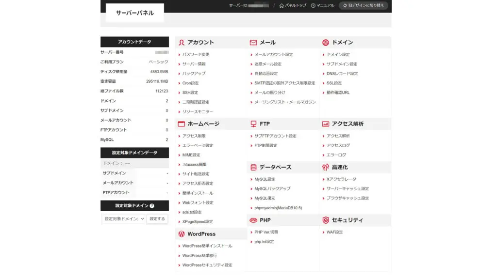 各種機能はサーバーパネル上にひとまとめで表示されているので、非常に分かりやすいです。Xserverとサーバーパネルとほぼ同一なので、もし使い方がわからなくても、Xserverのサーバーパネルの解説を調べれば、ある程度疑問が解決します。