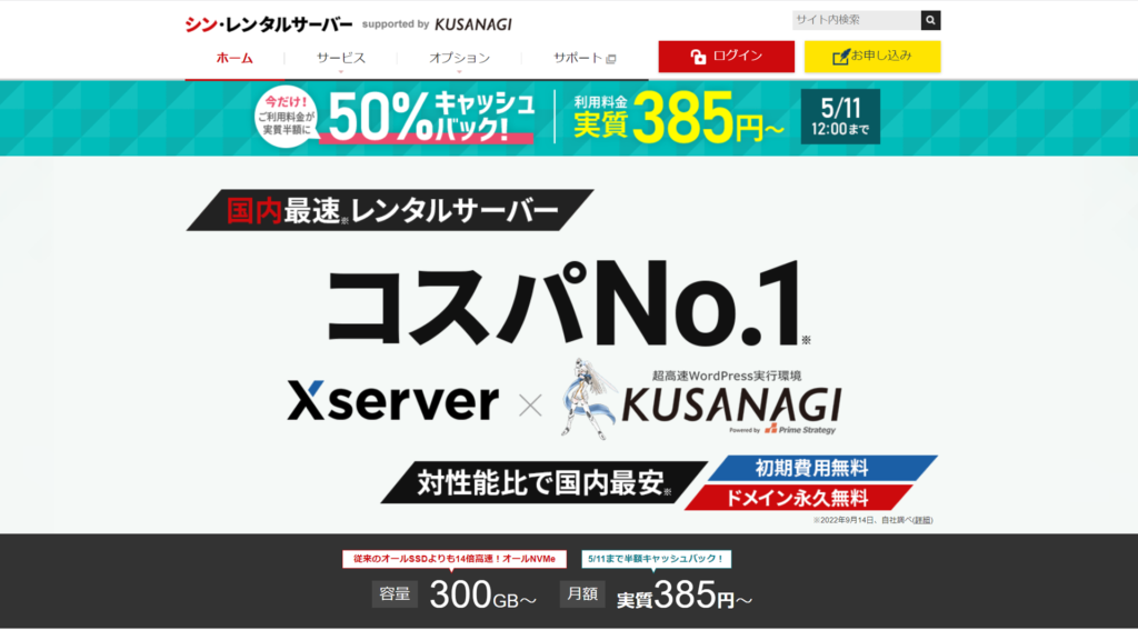 シン・レンタルサーバーは頻繁にキャンペーンを実施しています。そのキャンペーンを利用すると、驚くほど安くなります。