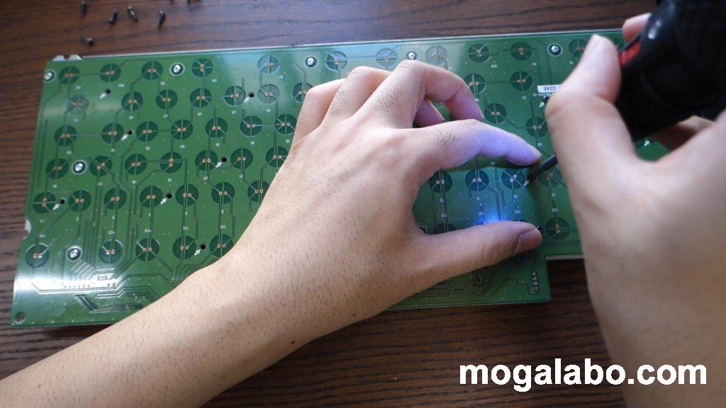 キーボードのrealforceを分解したかったので、ちょうどいい機会だと思い、220USB-1の試運転をしてみました。画像はrealforceの基盤ですが、基盤を外すために、ネジを10本以上緩める必要があり、手動だとかなり手間がかかります。