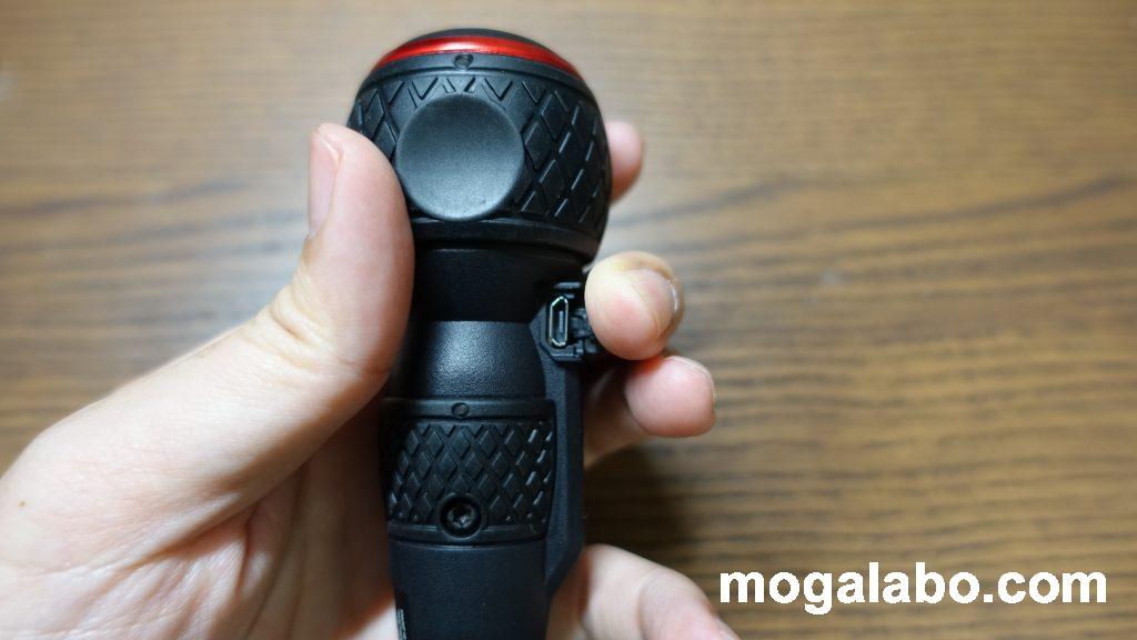 220USB-1の充電は保護キャップを外し、USB充電ケーブルで充電します。